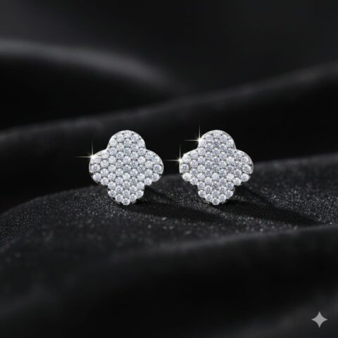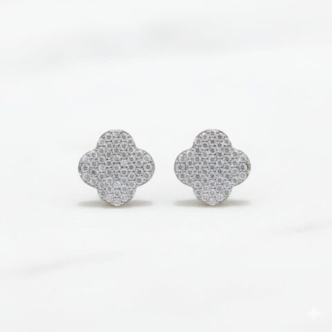 925 Sterling Silver Clover Stud Earrings with Cubic Zirconia | Elegant Sparkle Everyday Jewelry