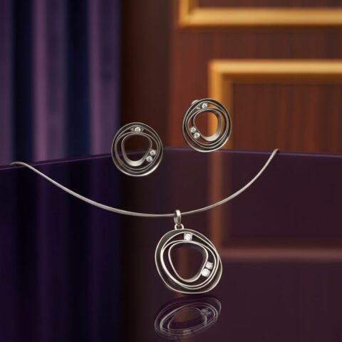 925 Sterling Silver Circular Pendant Necklace & Earring Set with CZ Stones | Modern Minimalist Jewellery
