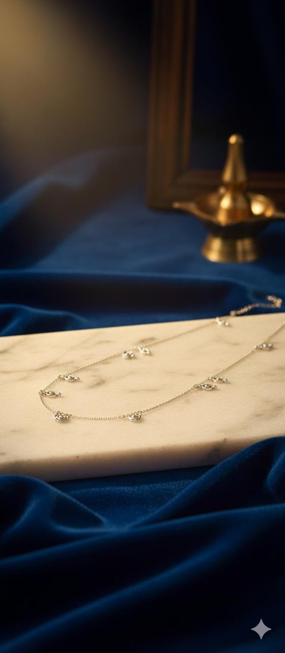 Adorn your ankles with timeless elegance using this 925 Sterling Silver Anklet, beautifully detailed with sparkling Cubic Zirconia (CZ) charms. Designed with a fine, graceful chain and evenly spaced eye-inspired CZ motifs, this anklet adds a subtle shimmer and a touch of mystique to your look. Perfectly balancing minimalism and luxury, it’s lightweight, comfortable, and ideal for both everyday wear and special occasions. The polished sterling silver finish ensures lasting shine, while the CZ accents catch the light with every step, making it a must-have accessory for modern elegance.