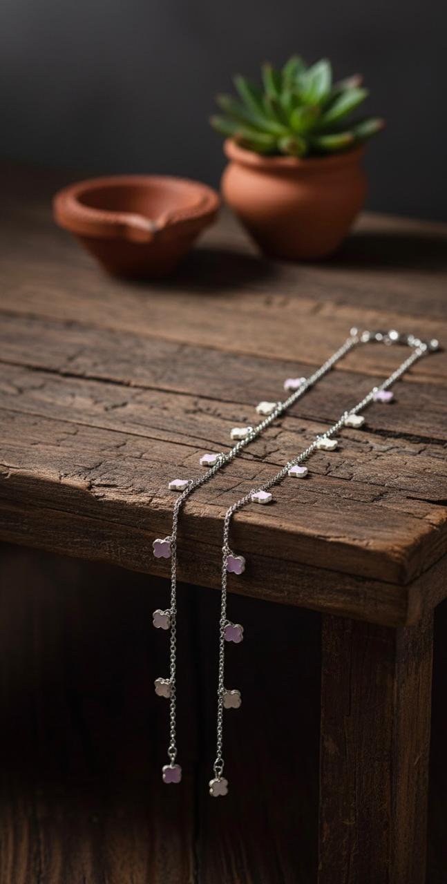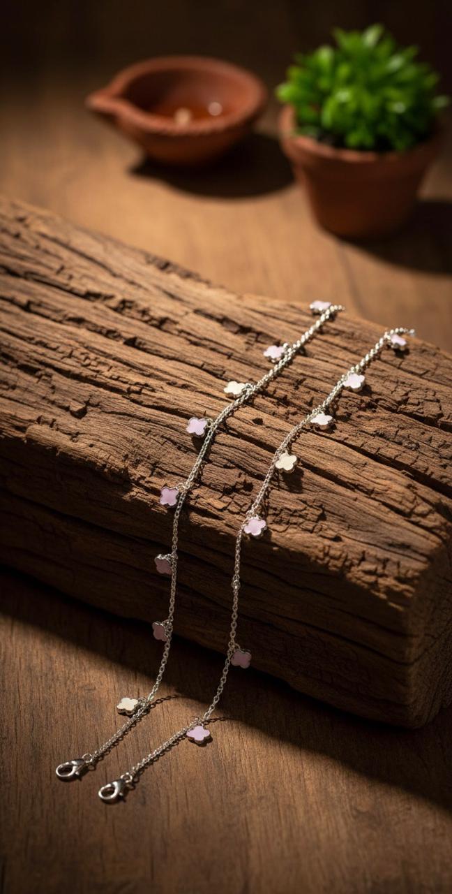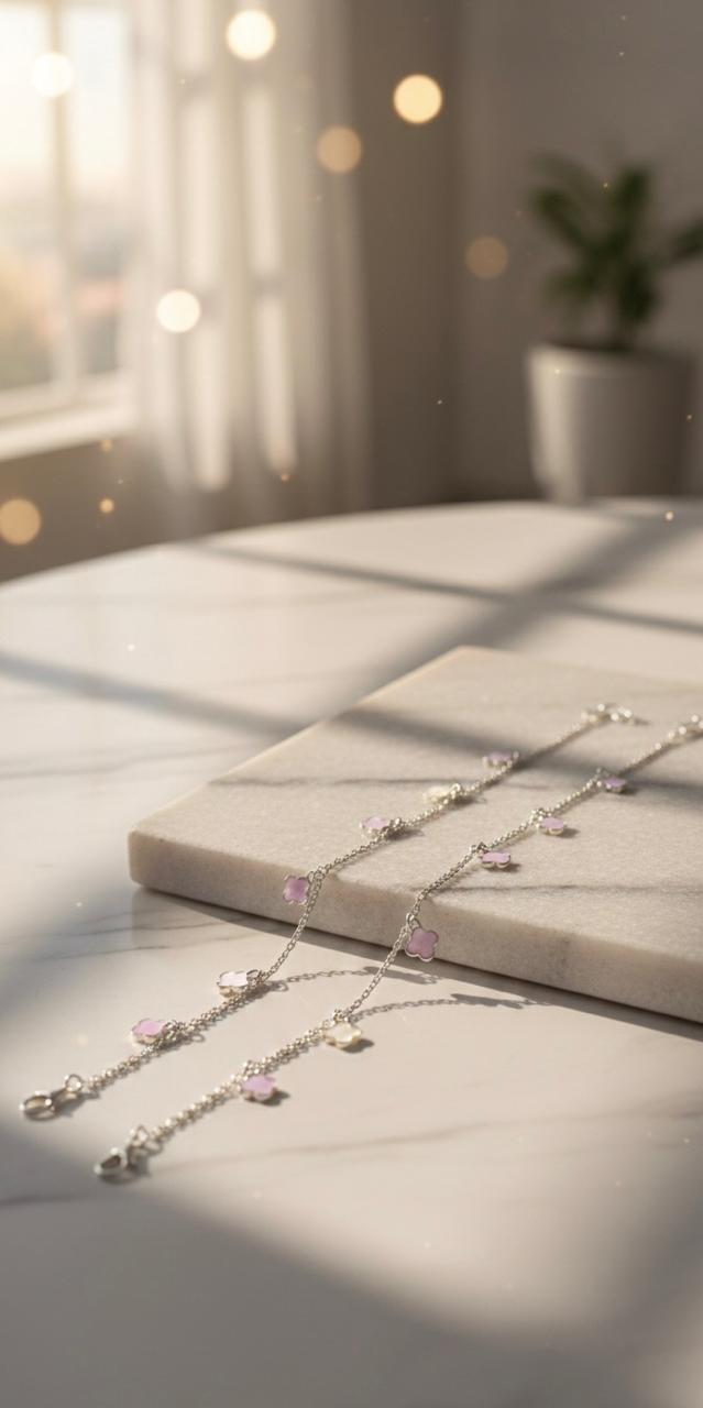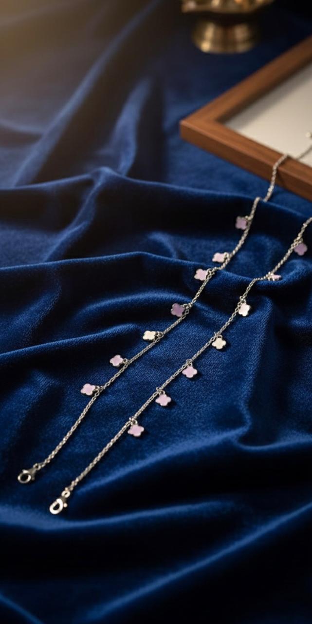 Add a soft, elegant touch to your everyday style with this 925 Sterling Silver Anklet, delicately adorned with charming floral motifs and shimmering Cubic Zirconia (CZ) stones. Designed with a fine silver chain and evenly spaced pastel-inspired flower accents, this anklet offers a graceful balance of femininity and sparkle. Lightweight and comfortable, it’s perfect for daily wear as well as special occasions. Whether paired with sandals, heels, or barefoot looks, this anklet enhances your style with subtle luxury and timeless appeal. Crafted from genuine sterling silver, it ensures lasting shine and durability.