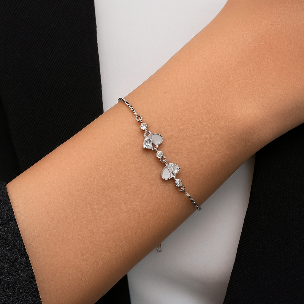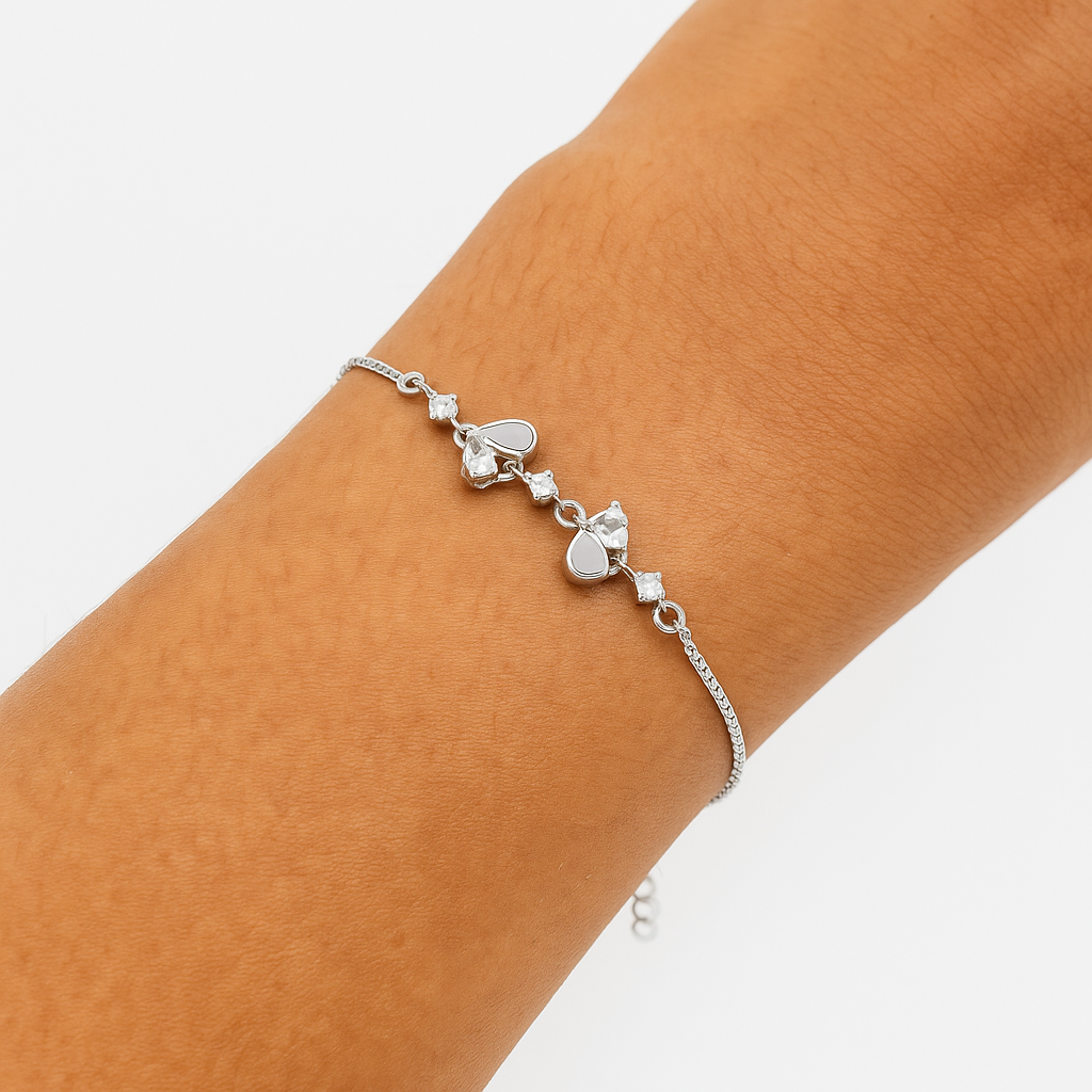 Add a touch of refined sparkle to your everyday look with this Elegant Sterling Silver Adjustable Bracelet. Beautifully crafted with a sleek box chain and adorned with a delicate combination of teardrop and triangle-shaped crystals, this bracelet embodies timeless elegance. Its adjustable sliding clasp ensures a perfect fit for all wrist sizes, making it ideal for both daily wear and special occasions.