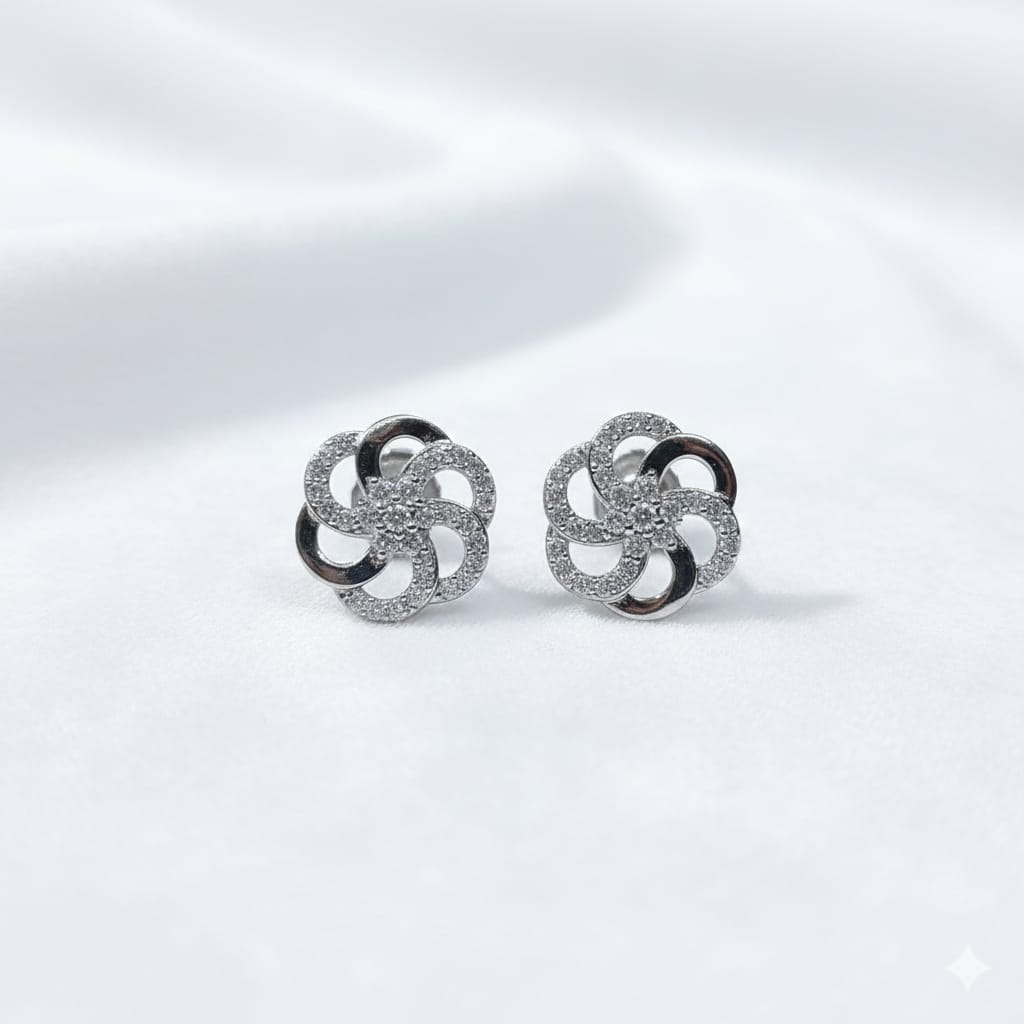 925 Sterling Silver Interlocking Floral Stud Earrings with Cubic Zirconia | Elegant Sparkle Jewelry