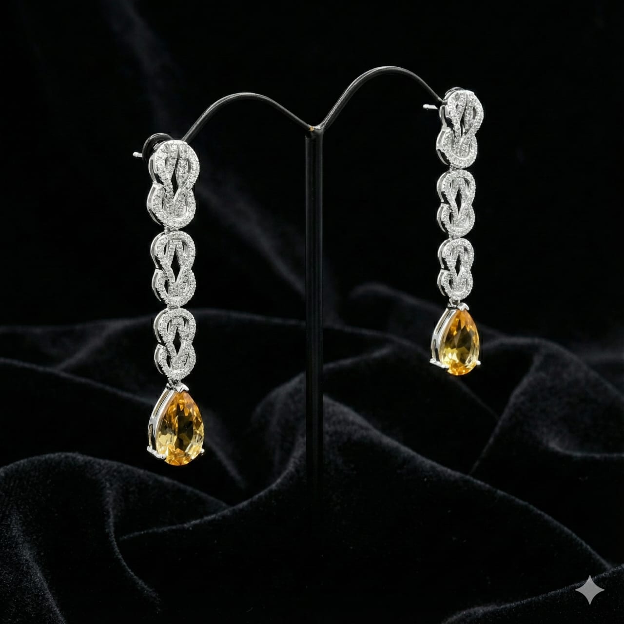 925 Sterling Silver Yellow Teardrop CZ Drop Earrings with Interlinked Pavé Accents