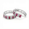 Silver Hoop Earrings with Ruby Baguette Stones & Sparkling Crystal Accents – Luxury Statement Hoops
