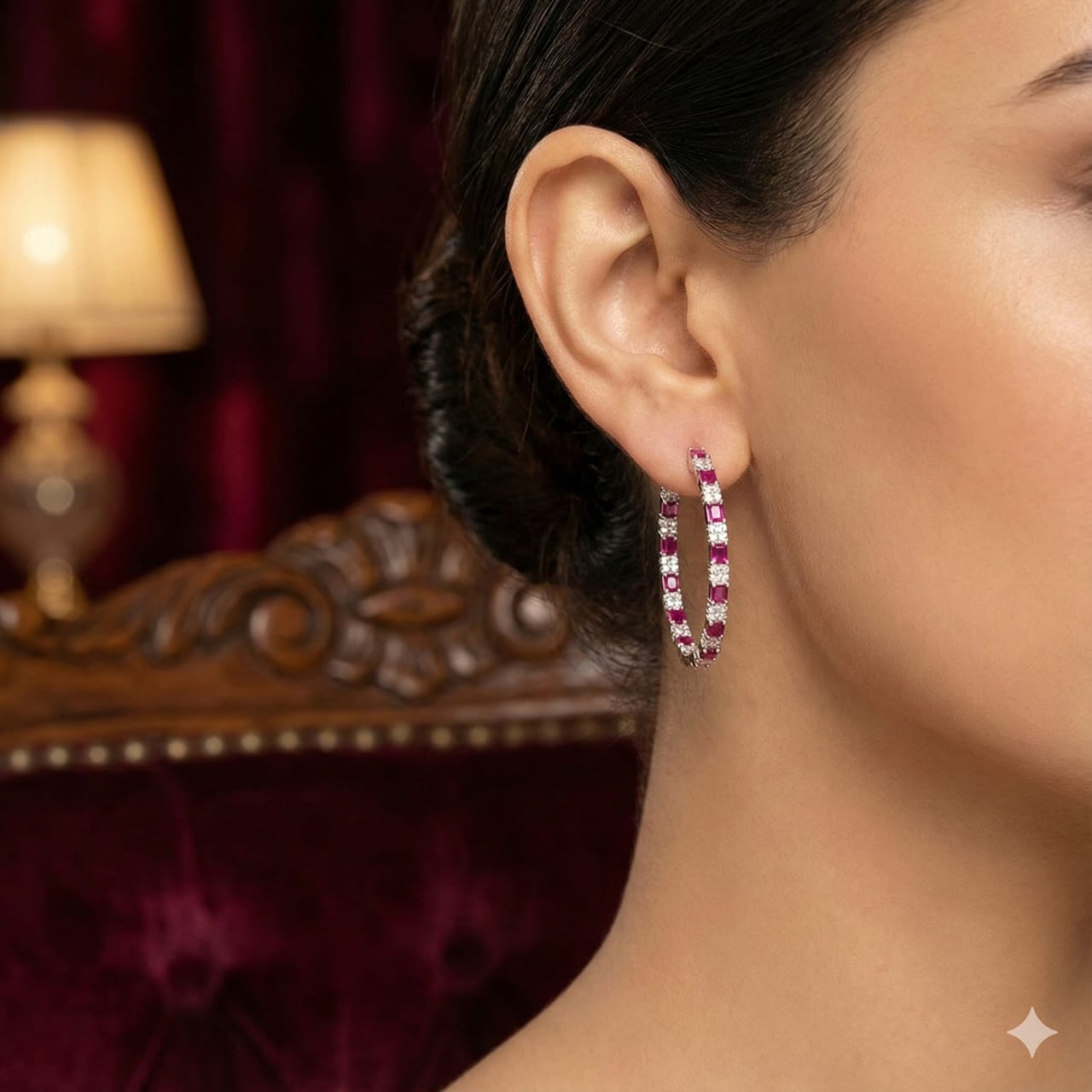 Sterling Silver 925 CZ Ruby Red & Hoop Earrings