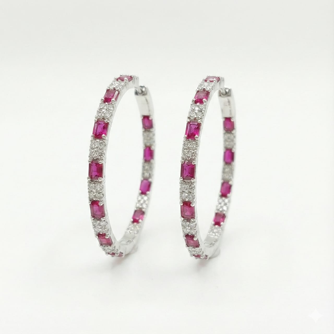 Brighten any look with these stunning Sterling Silver 925 hoop earrings featuring rich ruby-red baguette stones paired with sparkling round cubic zirconia. The alternating stone pattern delivers luxurious shine and bold color, perfect for special occasions or everyday elegance. Lightweight and comfortable, these hoops combine modern design with timeless brilliance.
