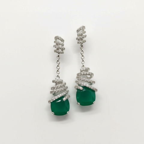 Handcrafted 925 Sterling Silver Floral Stud Earrings with Sparkling Cubic CZ Stone