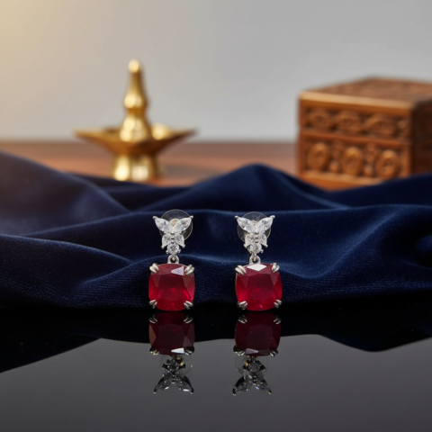 Enchanting CZ Ruby & Zircon 925 Silver Earrings
