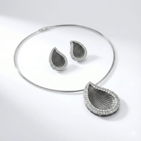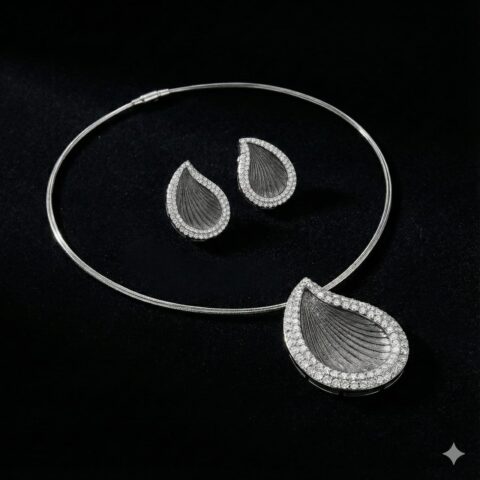 Elegant Teardrop 925 Sterling Silver Necklace & Earring Set with Sparkling CZ Stones