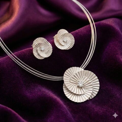 Elegant Textured Silver Spiral Necklace & Earrings Set