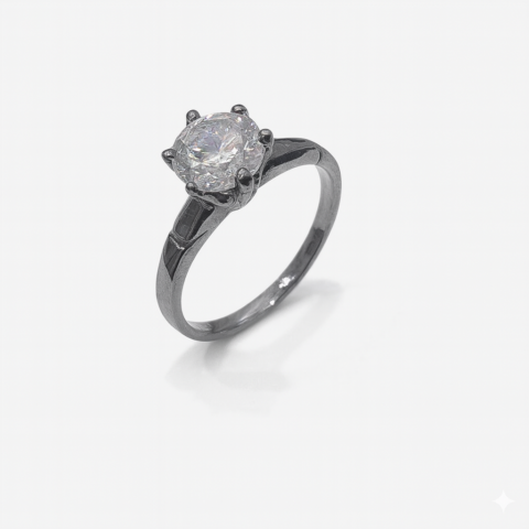 Elegant Sterling Silver 925 Oxidized Solitaire Ladies Ring