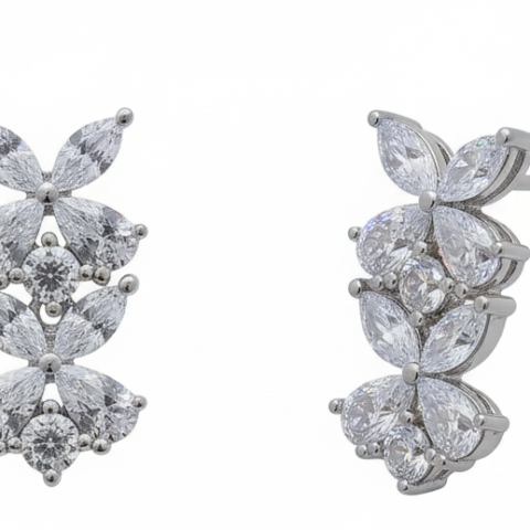 Exquisite Marquise & Round Cluster 925 Silver Earrings