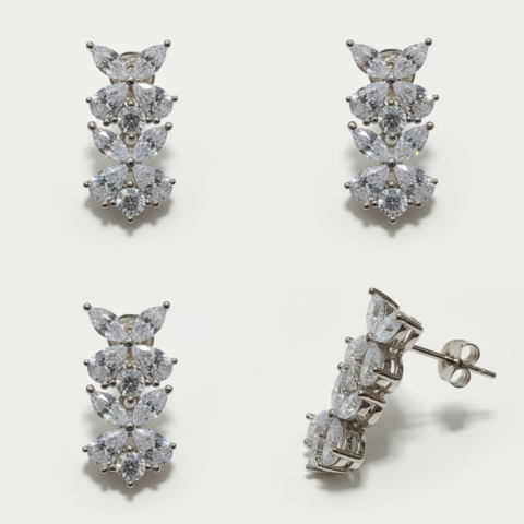 Exquisite Dazzle Cascade Drop Earrings – Handcrafted in 925 Sterling Silver