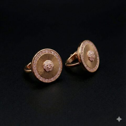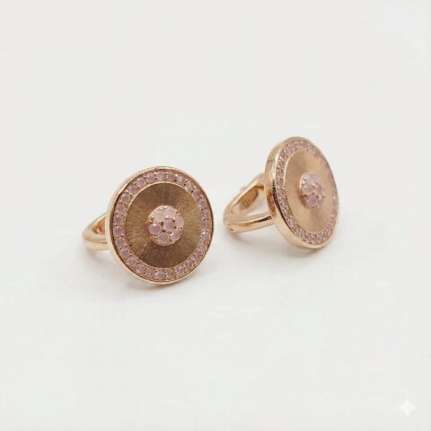 Rose Gold Circular Statement Earrings with Pink Crystal Halo – Elegant Designer Silver Earrings