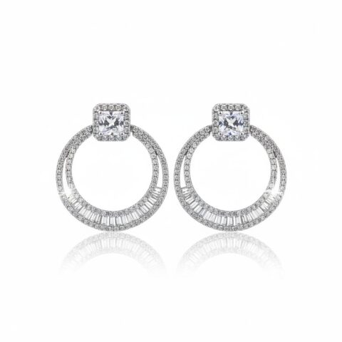 Radiant Halo 925 Sterling Silver CZ Circle Drop Earrings