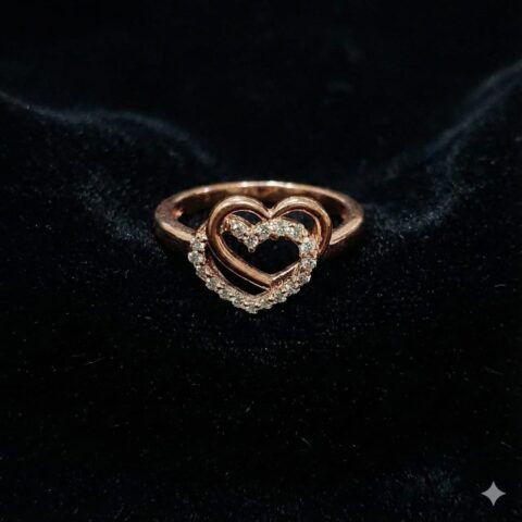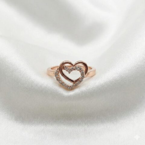 Rose Gold Plated Double Heart 925 Sterling Silver CZ Ring