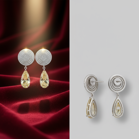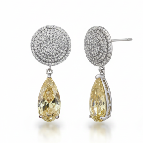 Sparkling Elegance: 925 Silver Pear-Cut Yellow Colour Stone Drop Earrings