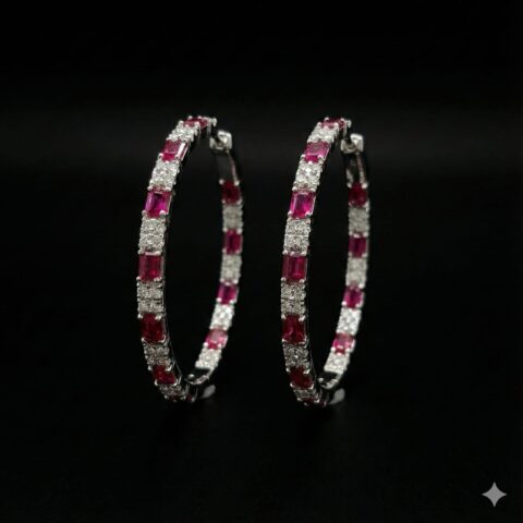 Sterling Silver 925 CZ Ruby Red & Hoop Earrings