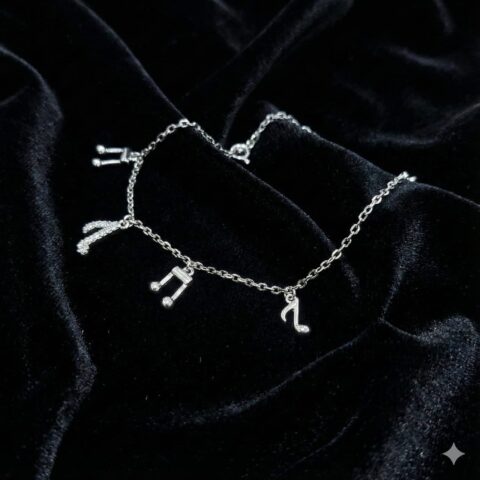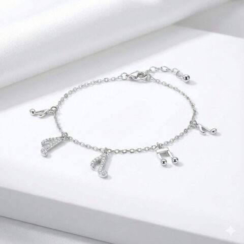 Sterling Silver 925 Musical Charm Bracelet with CZ Accents