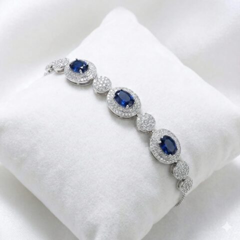 Sterling Silver 925 Oval Blue CZ Halo Bracelet