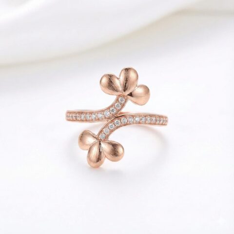 925 Sterling Silver Rose Gold Plated Floral CZ Open Ring for Women