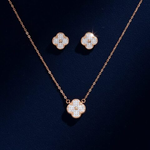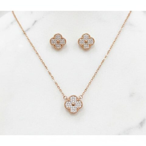 925 Sterling Silver Rose Gold Plated Floral Necklace & Earring Set with CZ Stones | Elegant Jewellery Set