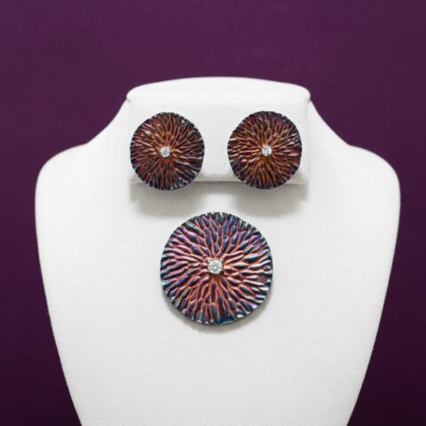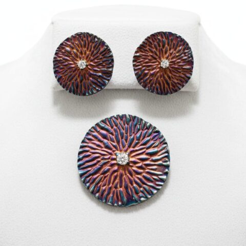 925 Sterling Silver Rose Gold Plated Radiant Disc Necklace & Stud Earring Set with CZ Stones