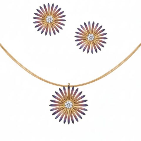 925 Sterling Silver Rose Gold Plated Sunburst Necklace & Earring Set with CZ Stones | Elegant Women’s Jewellery