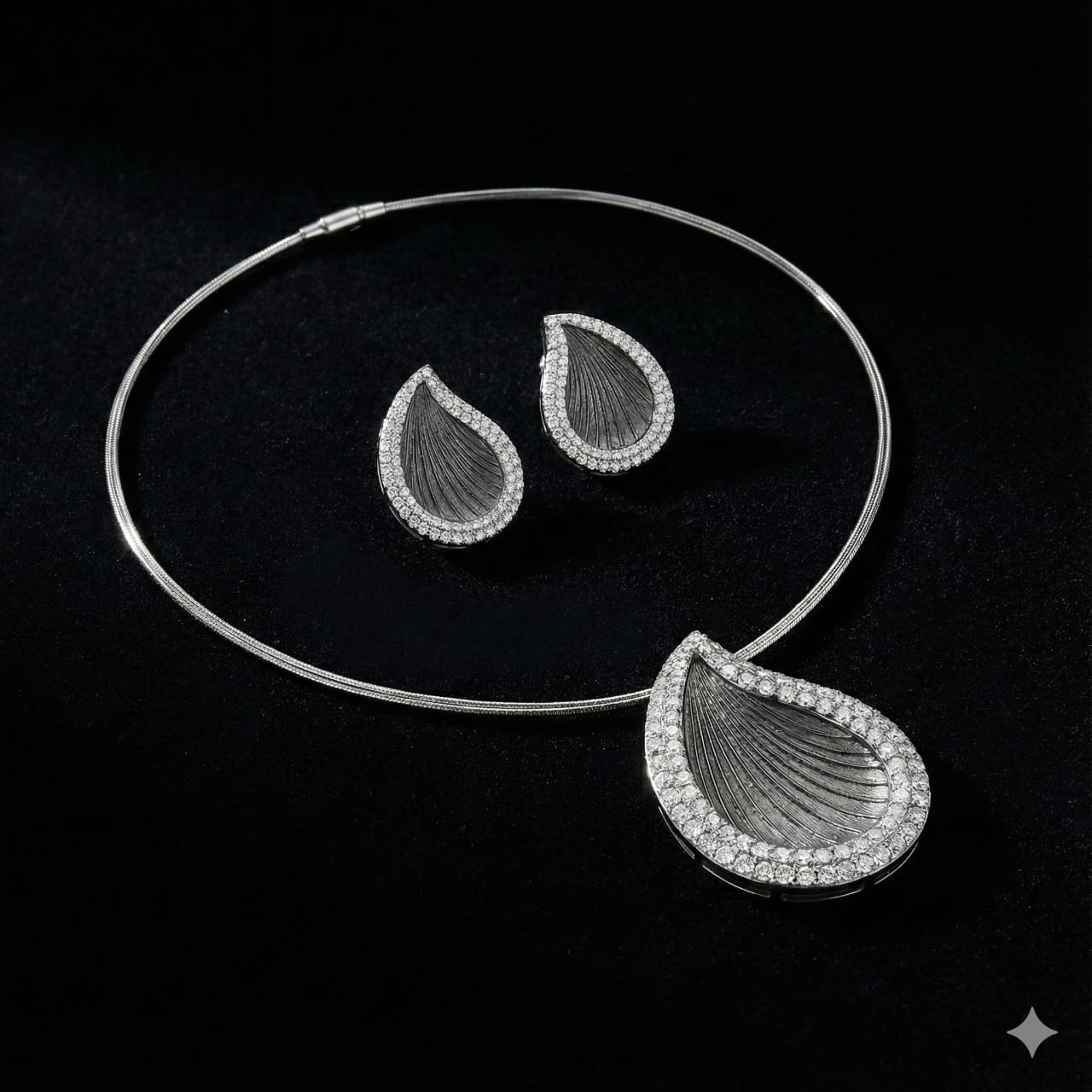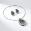 Elevate your style with this exquisite 925 sterling silver jewelry set, featuring a beautifully crafted teardrop-shaped pendant paired with matching earrings. The intricate engraved texture at the center creates a striking contrast, while the outer border is adorned with brilliant cubic zirconia stones that add luxurious sparkle from every angle. Perfect for formal events, weddings, parties, or gifting, this timeless set combines modern sophistication with classic charm, making it an essential addition to any jewelry collection.