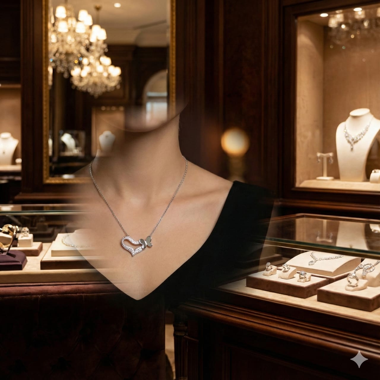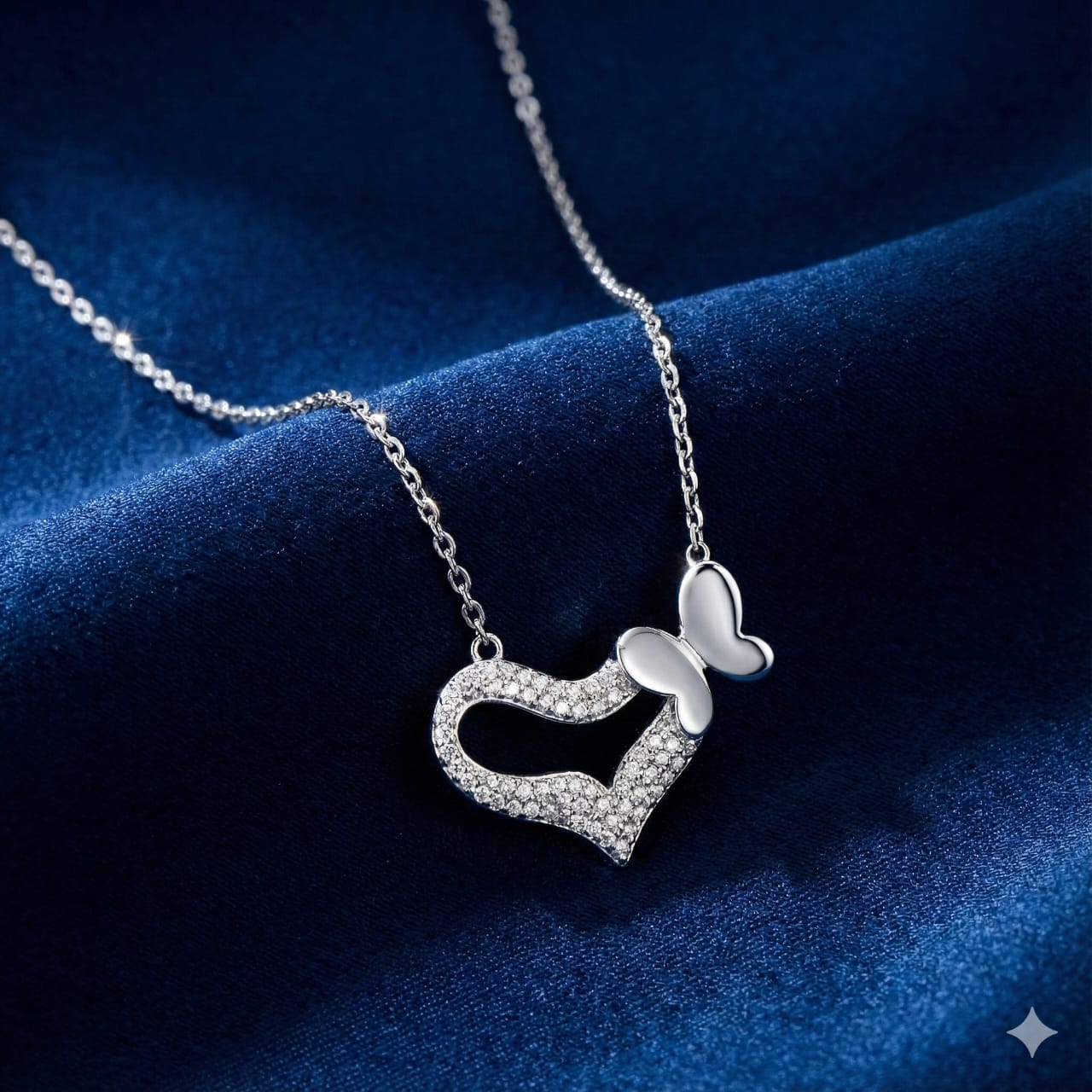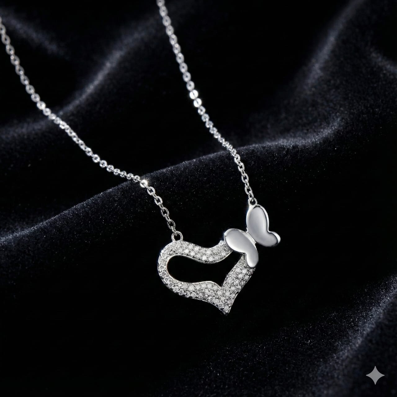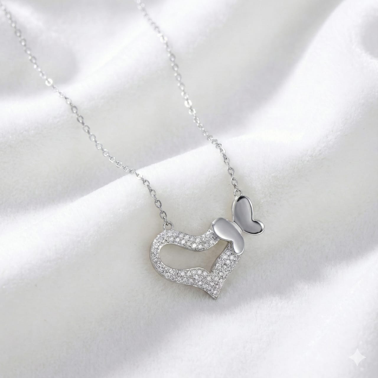 Butterfly Heart 925 Sterling Silver Pendant Necklace with CZ Stones