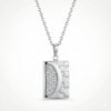 Make a statement with understated sophistication through this 925 Sterling Silver Pendant Necklace, featuring a contemporary half-moon design. One side of the rectangular pendant is adorned with finely set Cubic Zirconia (CZ) stones, offering brilliant sparkle, while the textured silver finish on the other side adds depth and modern character. Paired with a sleek sterling silver chain, this necklace is perfect for those who appreciate clean lines, modern elegance, and versatile styling.