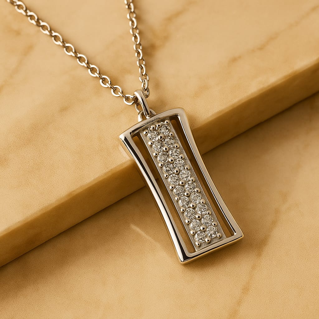 Add a touch of timeless elegance to your look with this exquisite Silveriya 925 Sterling Silver Pendant Necklace. Crafted with precision from pure 925 sterling silver, this pendant features a sleek rectangular silhouette embellished with high-quality cubic zirconia stones that radiate brilliance from every angle.
