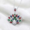 Royal Peacock Multicolor CZ 925 Sterling Silver Pendant Necklace with Chain
