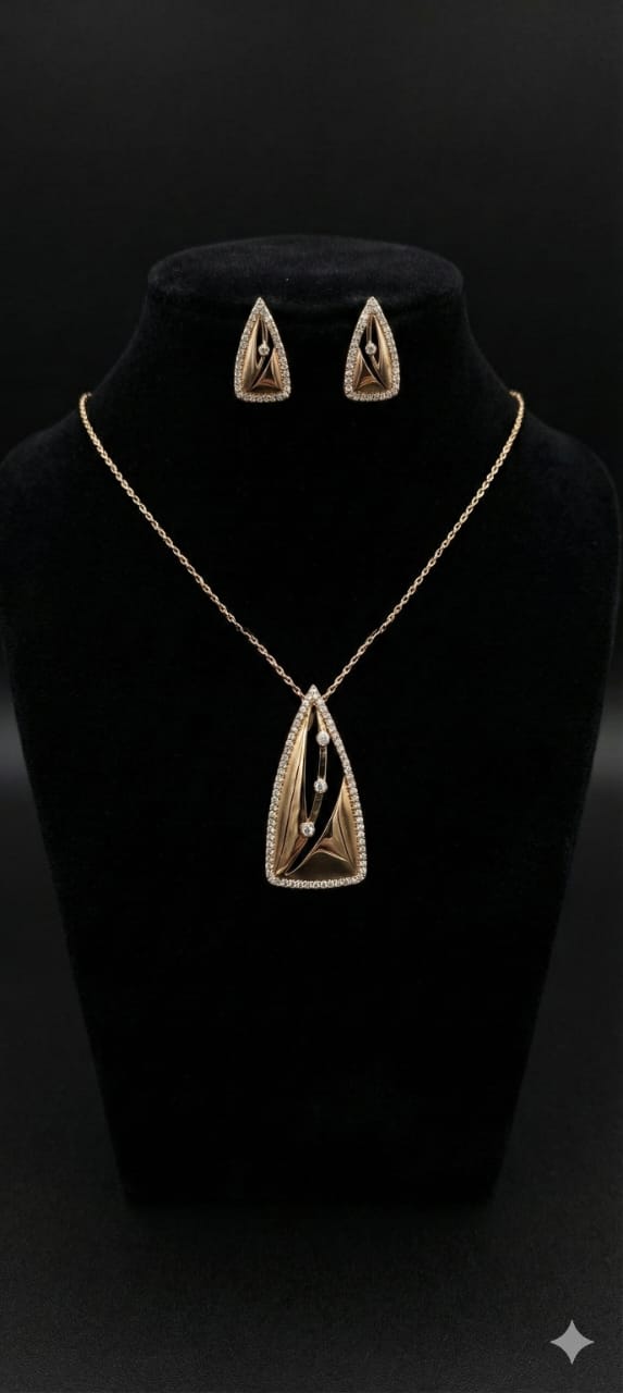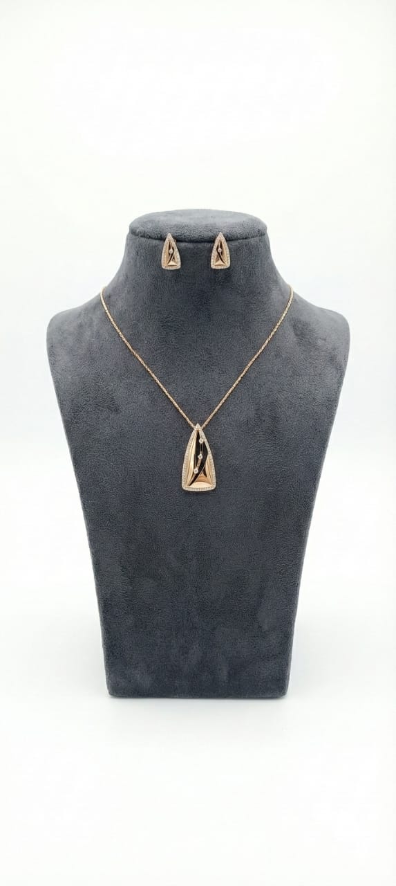 Add contemporary elegance to your collection with this Sterling Silver 925 necklace and earrings set, plated in luxurious rose gold. The uniquely shaped geometric pendant is paired with matching stud earrings for a stylish, coordinated look. Sleek, modern lines and a polished finish make this set perfect for both everyday wear and special occasions. Lightweight, refined, and fashion-forward, this jewelry set brings a touch of sophistication to any outfit.