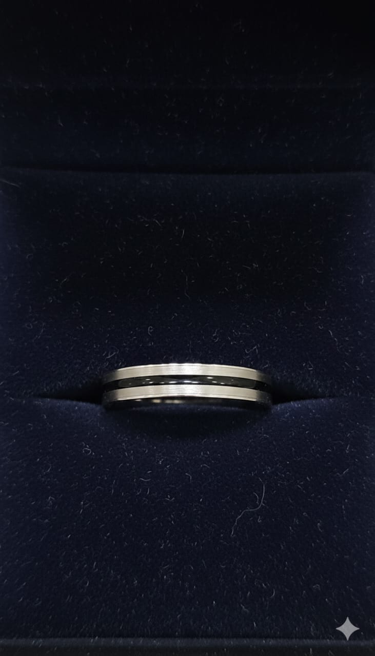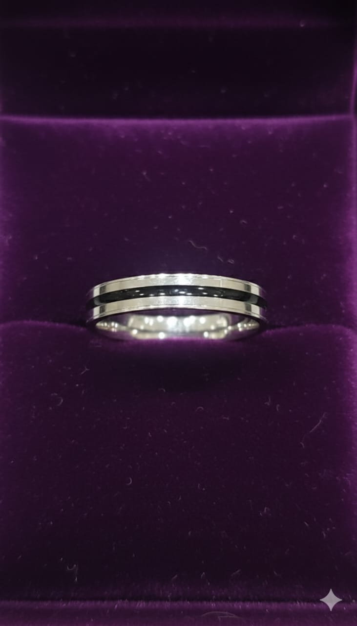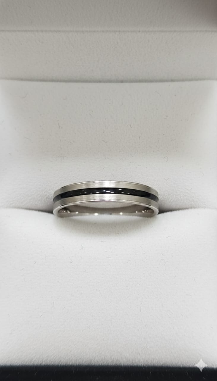 Design: Sleek band with elegant black inlay stripe
