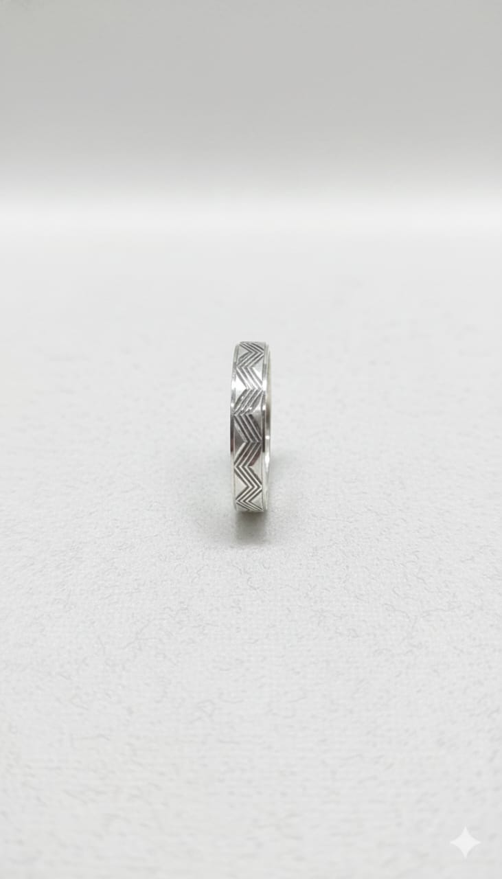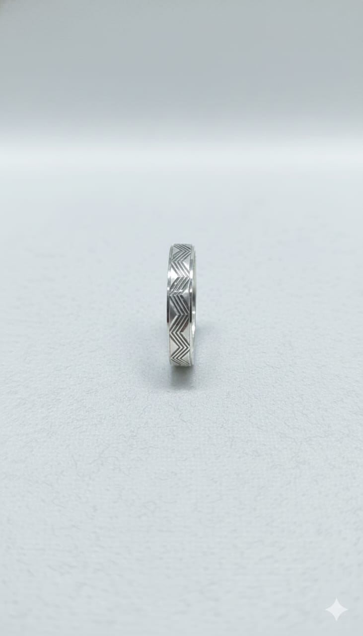Elevate your everyday style with this 925 Sterling Silver Men’s Chevron Band Ring, crafted for the modern man who values subtle detail and refined craftsmanship. Featuring a distinctive zig-zag chevron texture accented with sparkling cubic zirconia (CZ) stones, this ring strikes the perfect balance between bold design and minimalist elegance. Made from 925 sterling silver, the ring offers durability, a comfortable fit, and a long-lasting polished finish. Its sleek profile makes it ideal for daily wear, office styling, or as a contemporary alternative to a traditional wedding band.