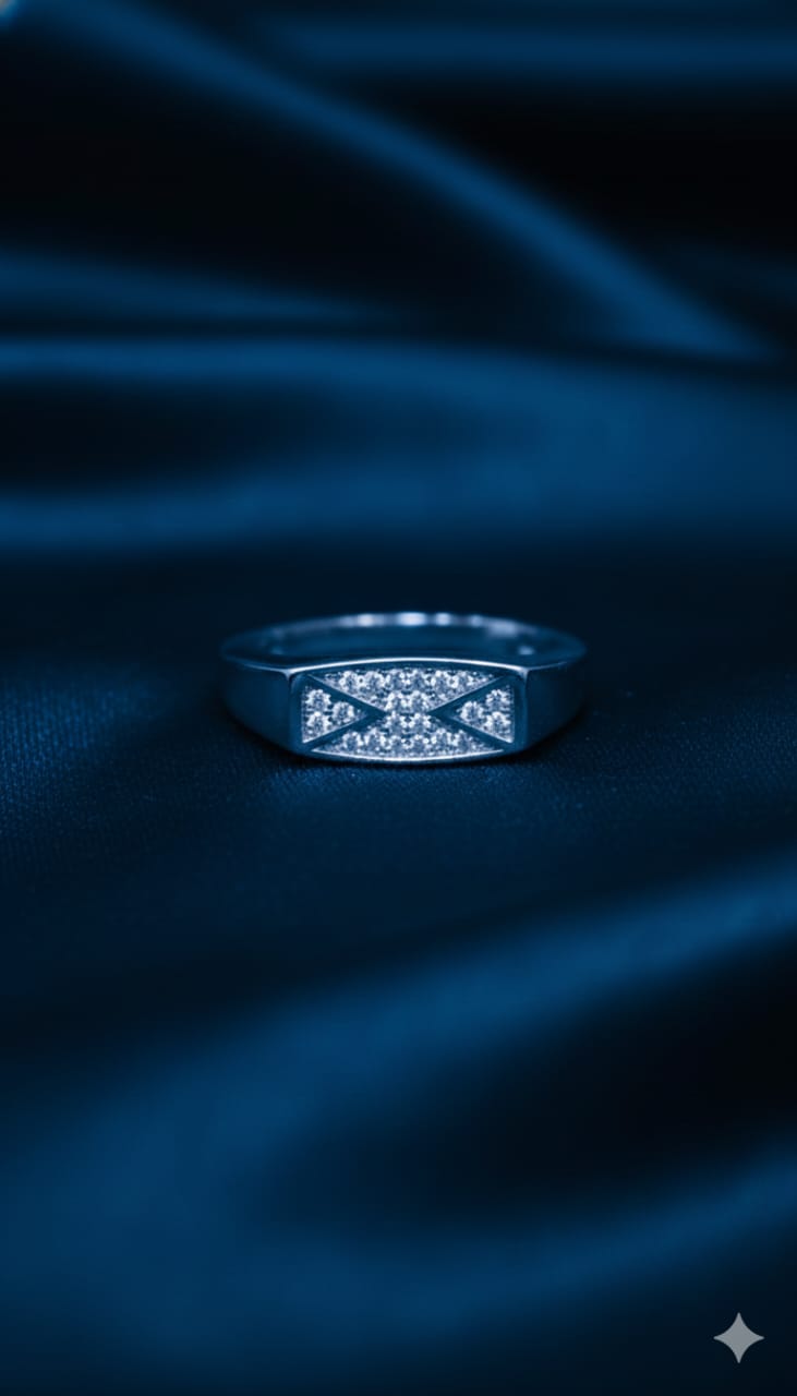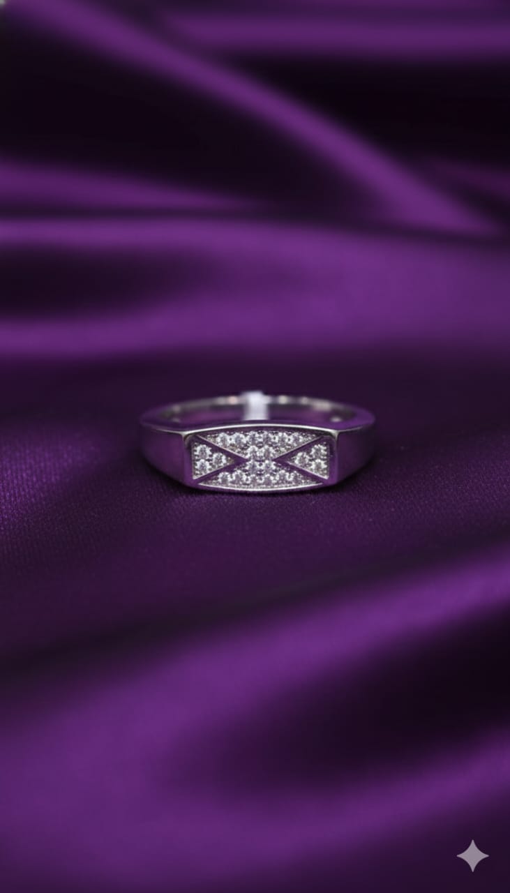 Design: Modern geometric CZ inlay with a sleek rectangular profile
