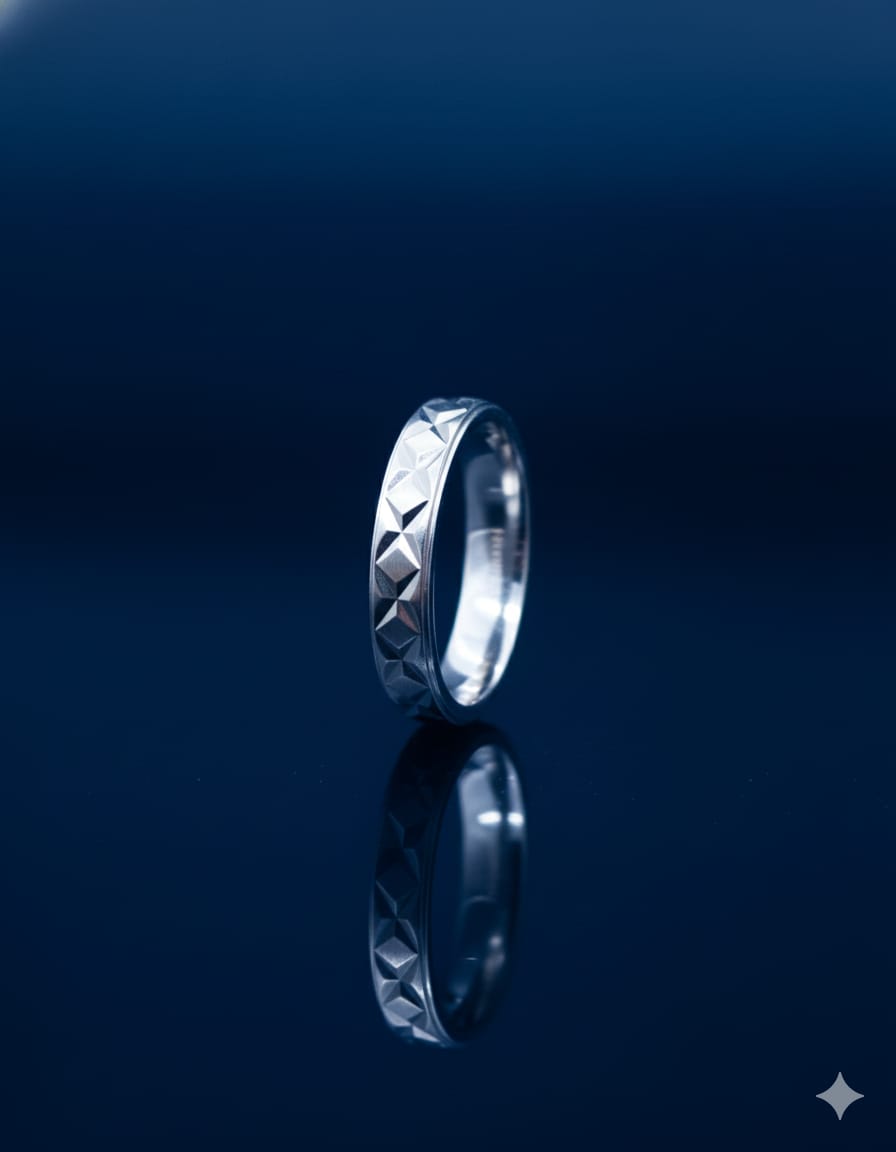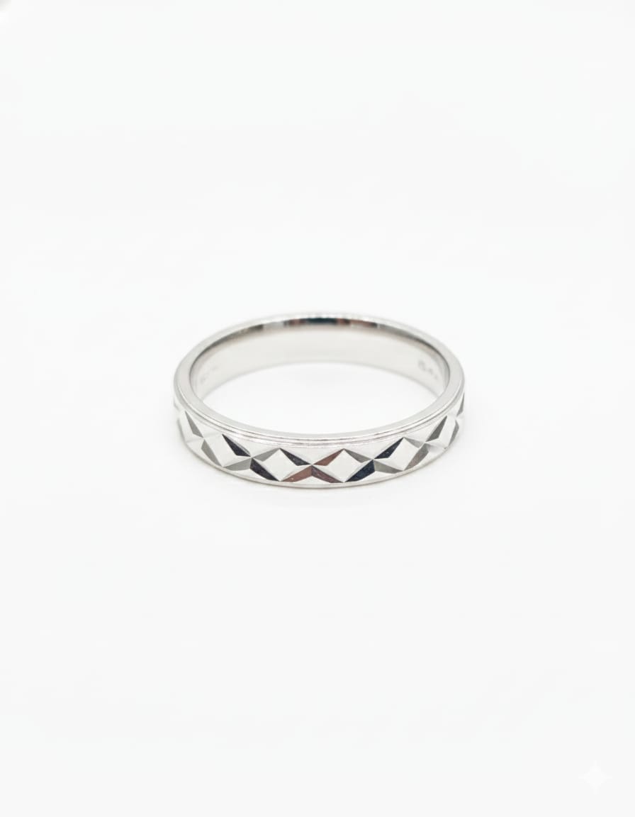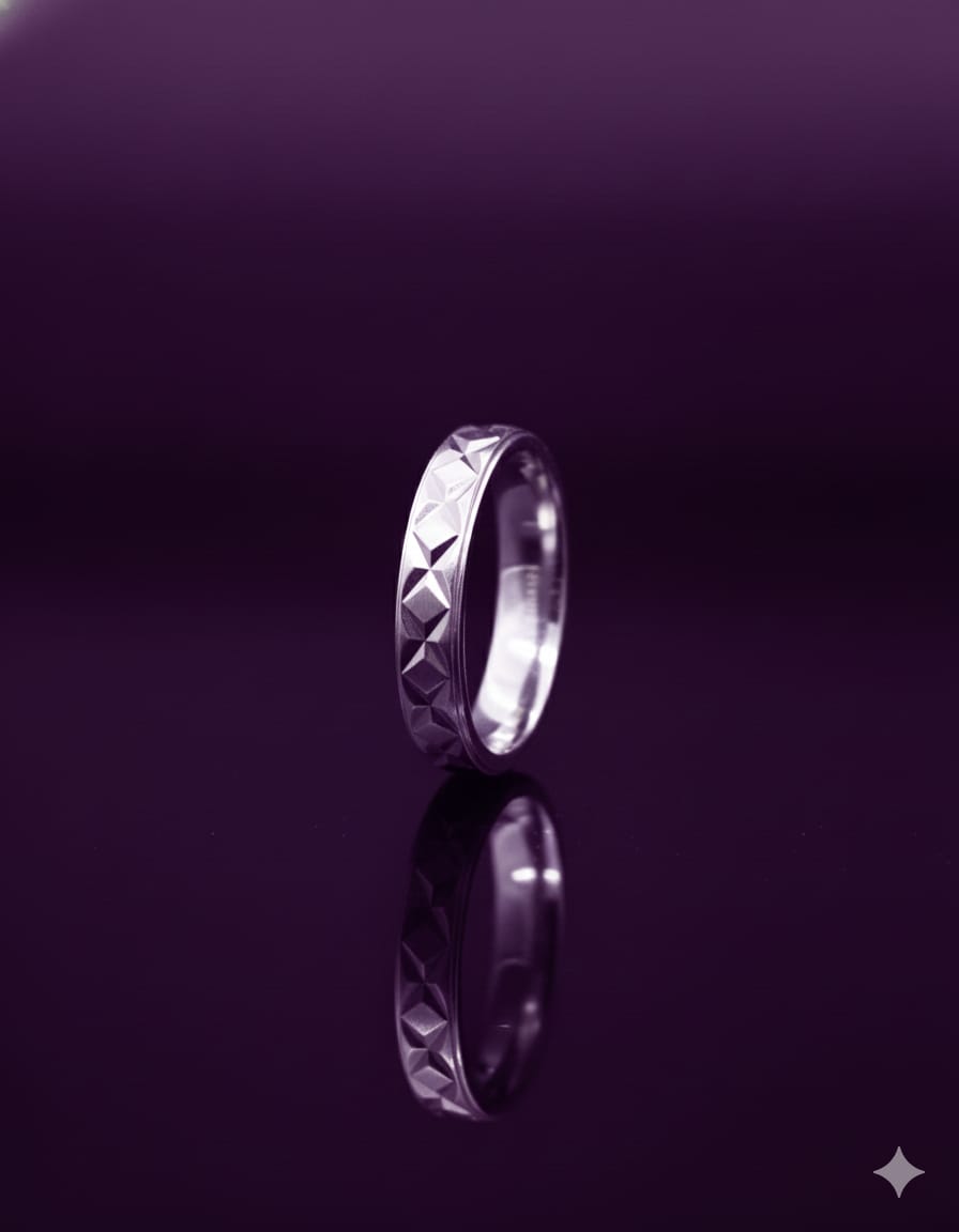 Design: Modern geometric patterned band with refined detailing