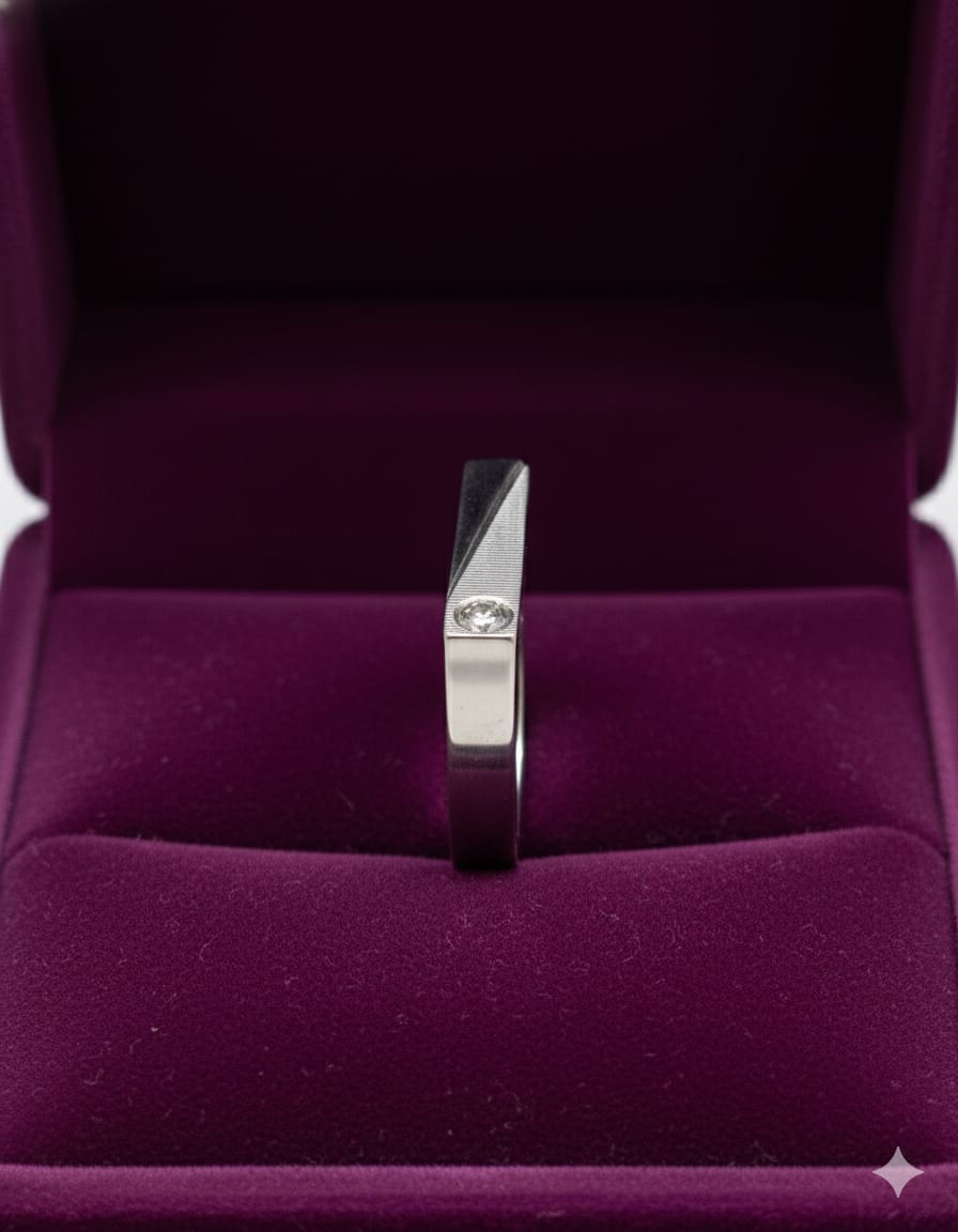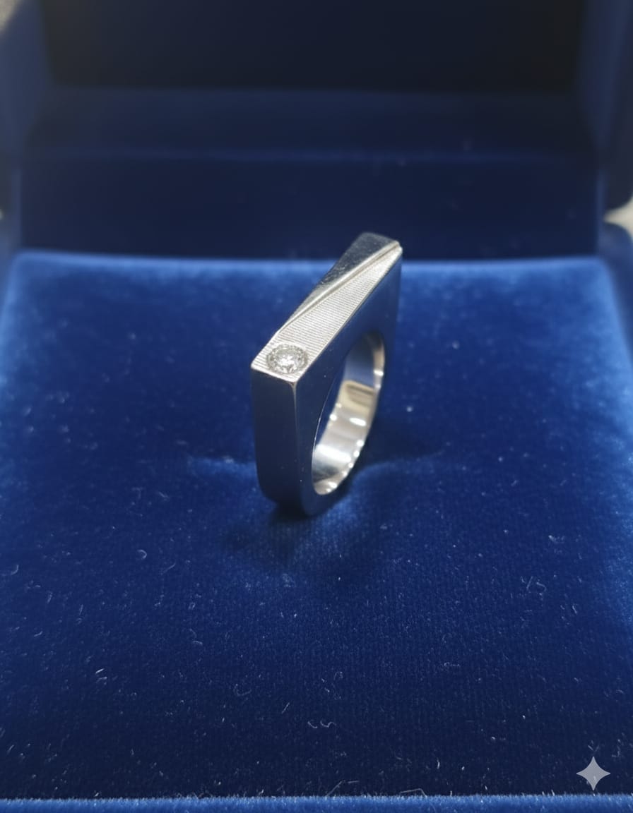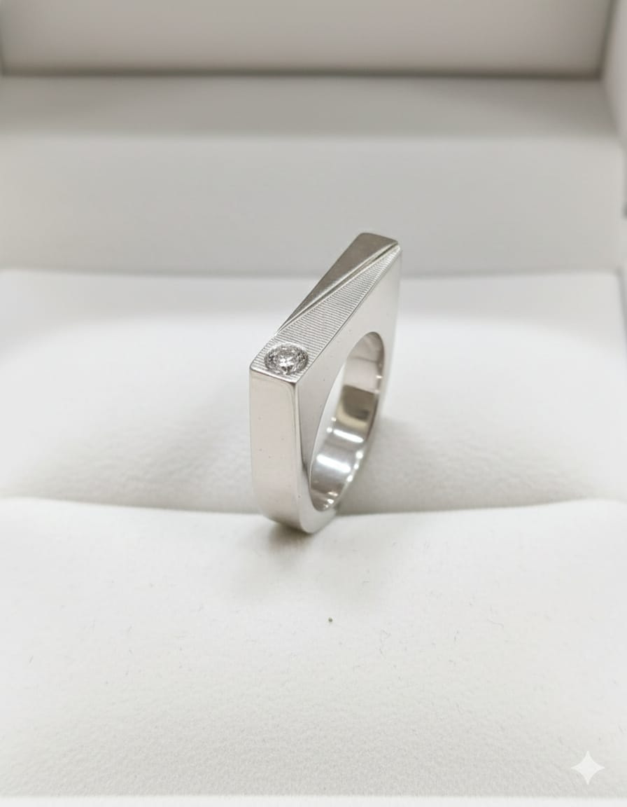 Sleek, bold, and contemporary, this 925 Sterling Silver Men’s Geometric Edge Ring is designed for men who prefer sharp lines and understated luxury. Featuring a distinctive angled face with fine linear texturing and a brilliant cubic zirconia (CZ) stone set subtly on the edge, this ring delivers a refined yet powerful aesthetic. Crafted from hallmarked 925 sterling silver, the ring offers excellent durability, a smooth comfort fit, and a high-polish finish that enhances its architectural design. Perfect for modern styling, office wear, or evening occasions, this ring is a statement of confidence and precision craftsmanship.