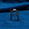 925 Sterling Silver Men’s Oxidized Architectural Frame Ring with Cubic Zirconia | Bold Designer Statement Ring