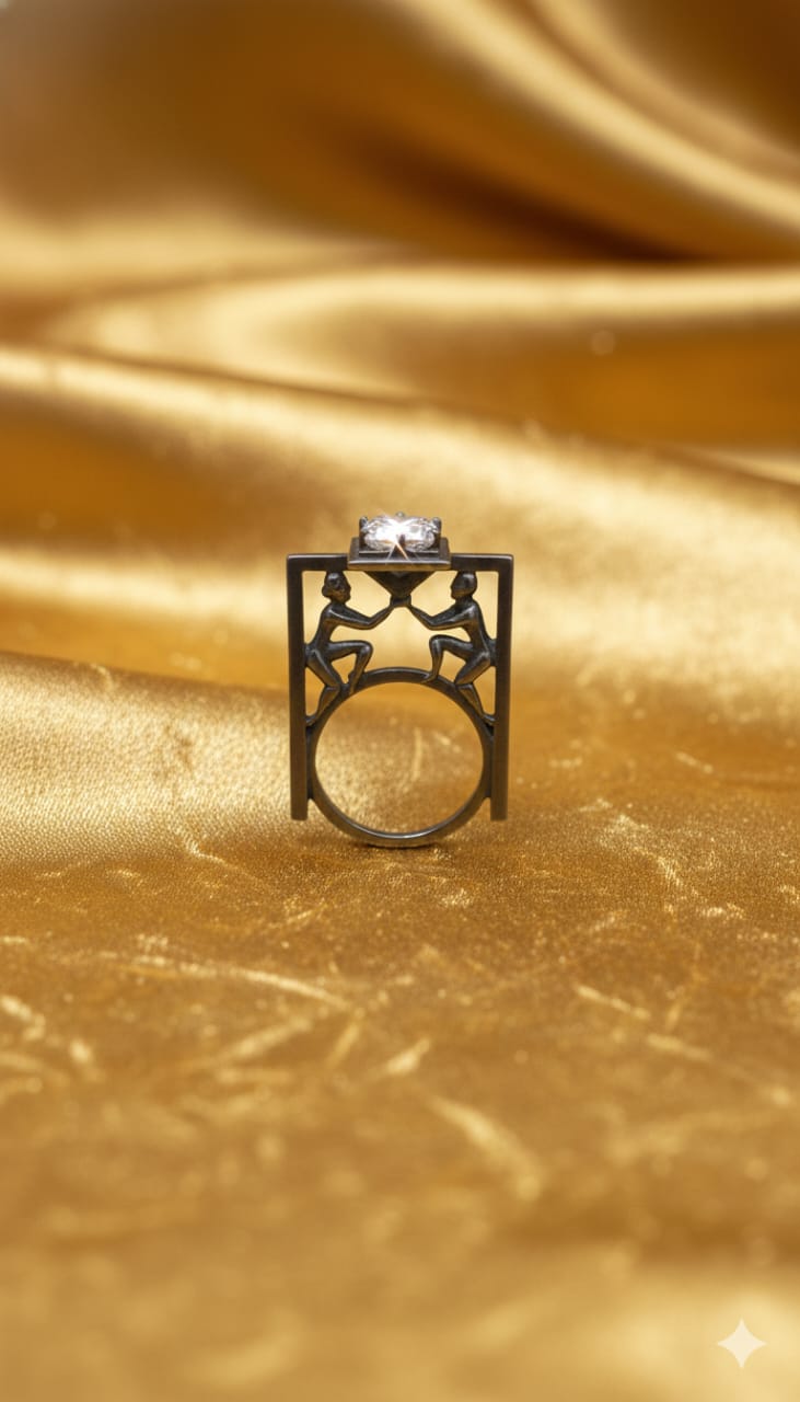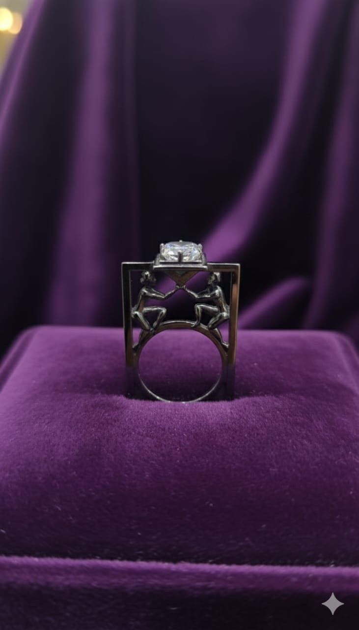 Designed for men who dare to stand apart, this 925 Sterling Silver Oxidized Gents Ring features a striking architectural frame structure with sculptural detailing beneath a brilliant cubic zirconia (CZ) centerpiece. The open-frame construction adds depth and dimension, creating a powerful visual statement that blends modern art with masculine strength. Crafted from hallmarked 925 sterling silver and finished in a rich oxidized tone, this ring delivers an antique-inspired yet contemporary aesthetic. The elevated CZ stone adds refined sparkle, while the bold structure ensures durability and comfort. Ideal for statement wear, evening styling, or collectors of unique jewelry, this ring is a true expression of individuality.