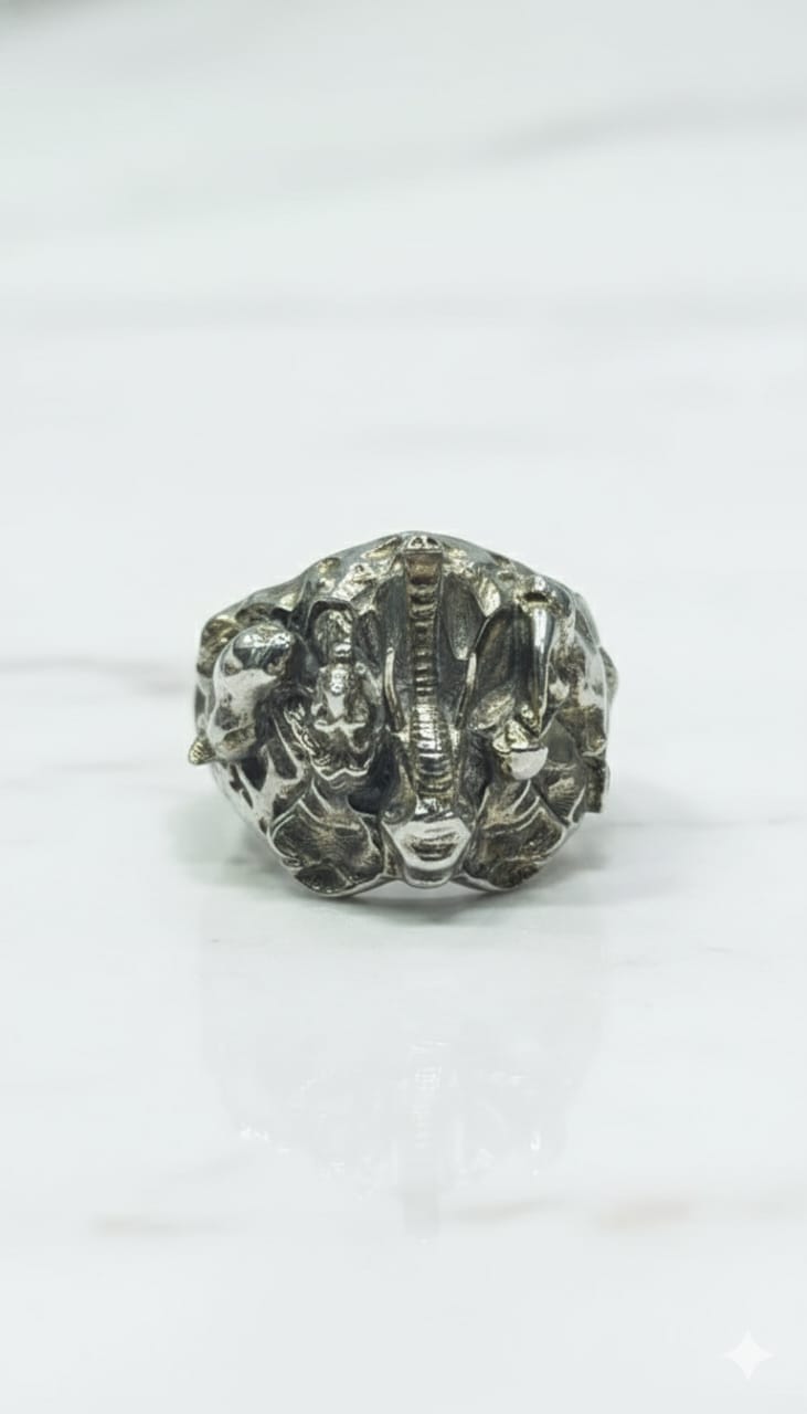 Make a powerful style statement with this 925 Sterling Silver Men’s Oxidized Ganesha Ring, crafted for men who value strength, spirituality, and distinctive design. Featuring a highly detailed sculpted Lord Ganesha motif, this ring symbolizes wisdom, protection, and prosperity, enhanced with subtle cubic zirconia (CZ) accents that add refined sparkle without overpowering the rugged look. Finished with an oxidized silver texture, the ring delivers a bold, antique aesthetic while maintaining the durability and purity of hallmarked 925 sterling silver. Ideal for daily wear, spiritual occasions, or as a statement accessory, this ring is designed for confident individuals who appreciate meaningful craftsmanship.