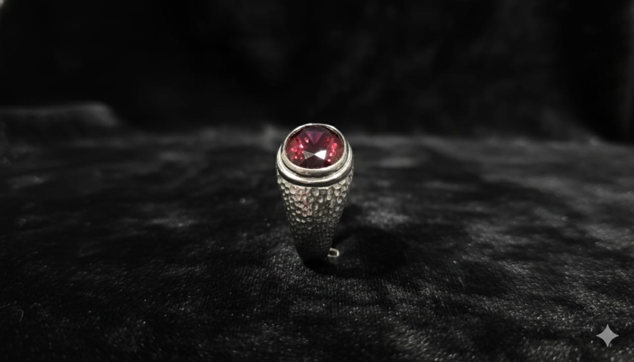 925 Sterling Silver Men’s Oxidized Tapered Ring with Ruby-Red Cubic Zirconia | Bold Statement Jewelry