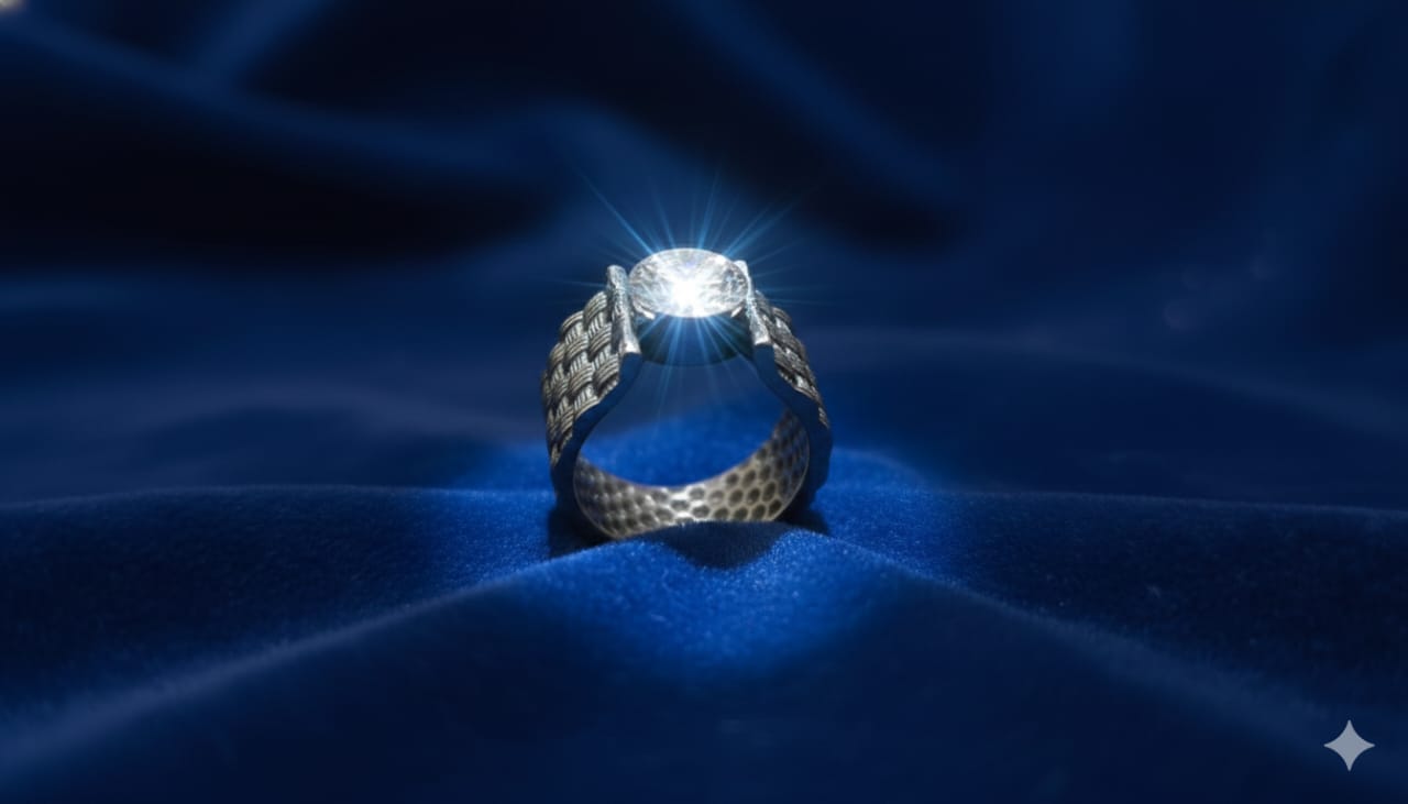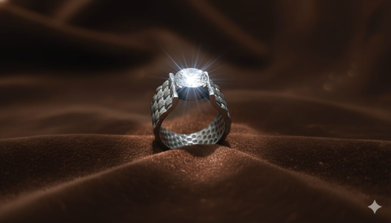 Design: Textured shank with raised stone setting