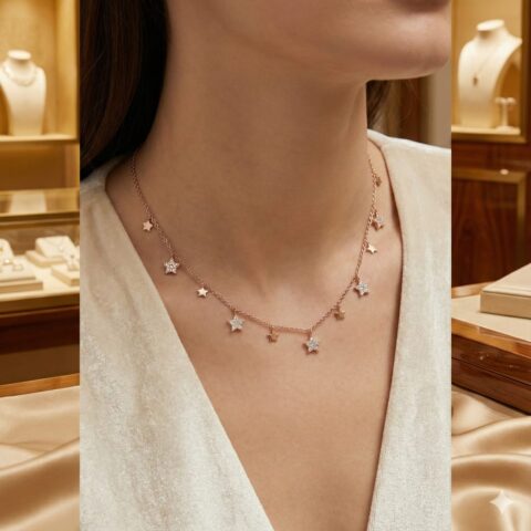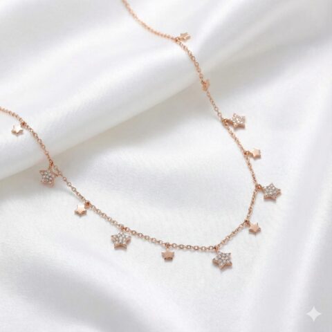 Star Charm 925 Sterling Silver Rose Gold Necklace with CZ Stones