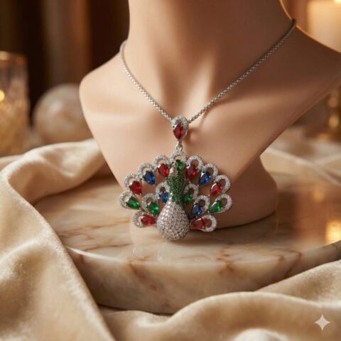 Royal Peacock Multicolor CZ 925 Sterling Silver Pendant Necklace with Chain