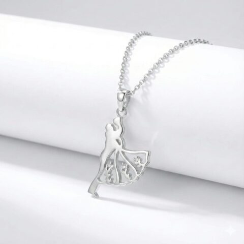 Sterling Silver 925 “Dancing Couple” Pendant Necklace with Cut-Out Detailing