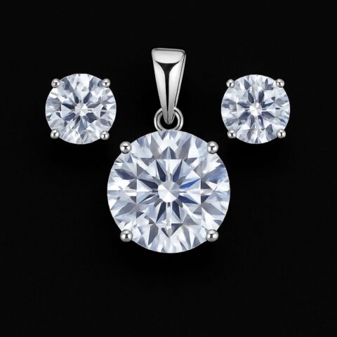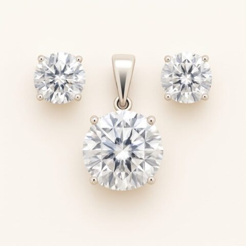 Silveriya 925 Sterling Silver Solitaire Pendant & Stud Earrings Set