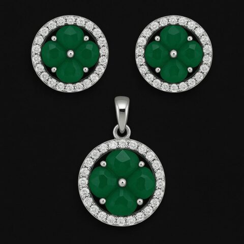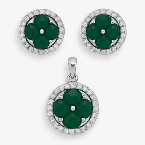 Silveriya 925 Sterling Silver Green Clover Pendant & Stud Earrings