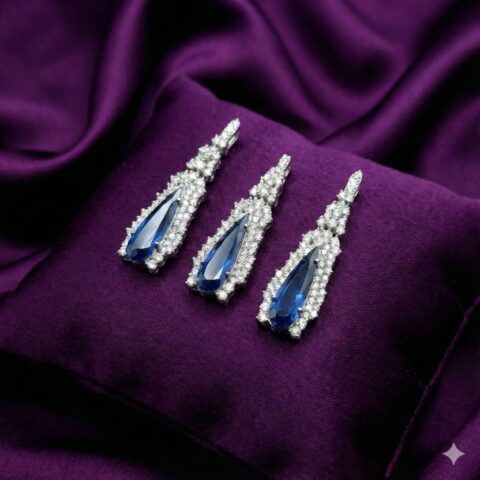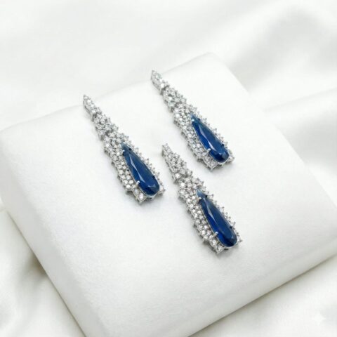 Sterling Silver 925 Blue Teardrop CZ Pendant and Earring Set